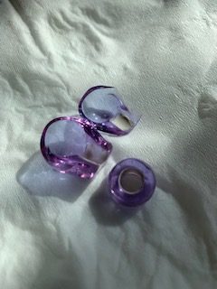 8 hours later… I remained hopeful that it was still intact as I fished out the hollow mandrel… and… yes, it was still a vessel! Yay, it was beautiful, looking gorgeous in its transparent purple glory.